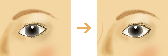 目尻切開とは、目尻を切開して切れ長で、かつ大きな目を作る治療です。目尻を切開すると、目尻から下まぶたにかけてのラインが緩やかになり、非常に愛らしい目になります。